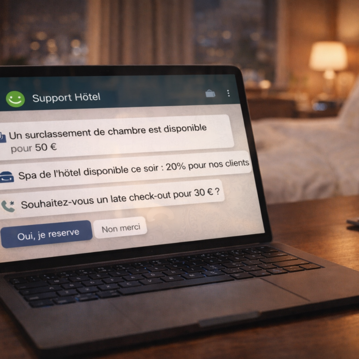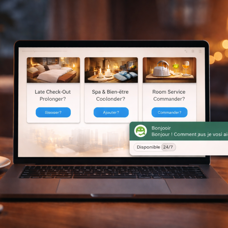 Chat site web/Conciergerie/CRM & CDP/Email/Front Office/Paiement / Facturation/PMS/Réduction de charge (Automatisation)/Upsell & Cross-sell/Ventes directes/WhatsApp & MessagerieUpsell & cross-sell hôtelier